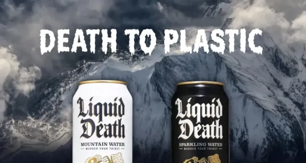 A startup selling canned water branded itself like a heavy metal band: skulls, slogans like “Murder Your Thirst”, and attacks on “boring bottled water.”